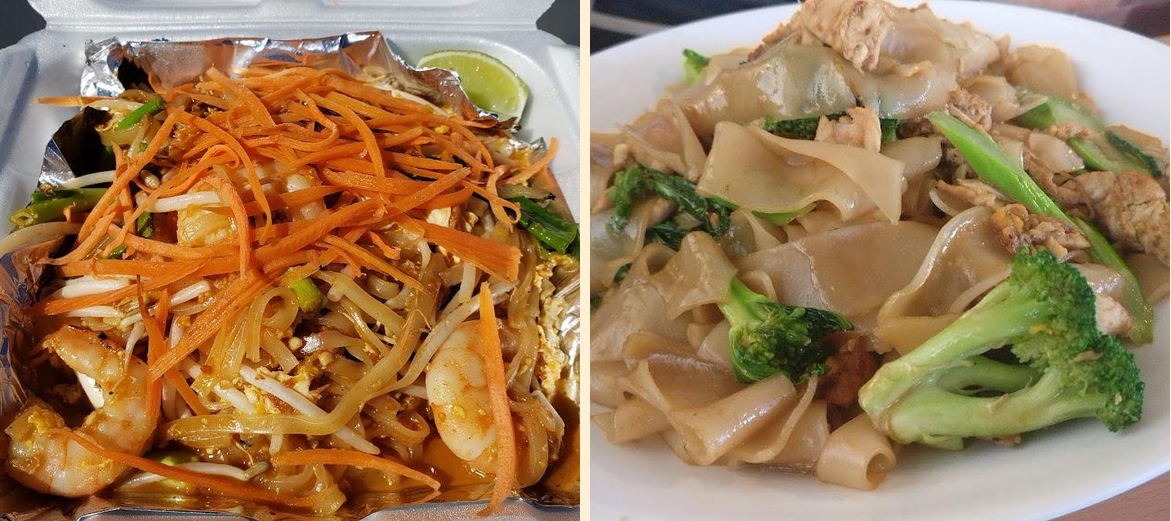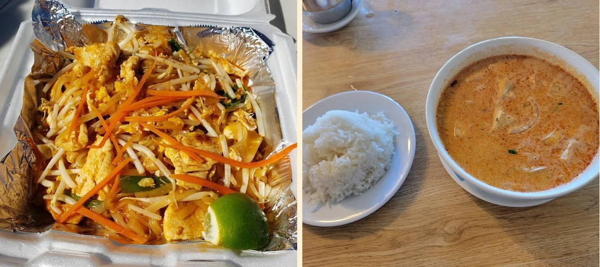 Definitely try the crispy chicken wontons and pad thai. The traditional curries, especially the green curry, are excellent too. For dessert, the baked sticky rice with banana hits the spot.